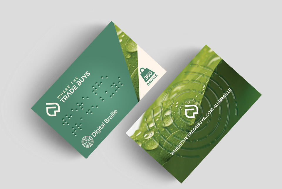 Our Braille business cards are printed digitally utilising a 3D-UV process. Our process is faster and more economical than traditional braille embossing. Add Braille to one or two sides of your business cards. We can set up and translate the braille artwork for you.